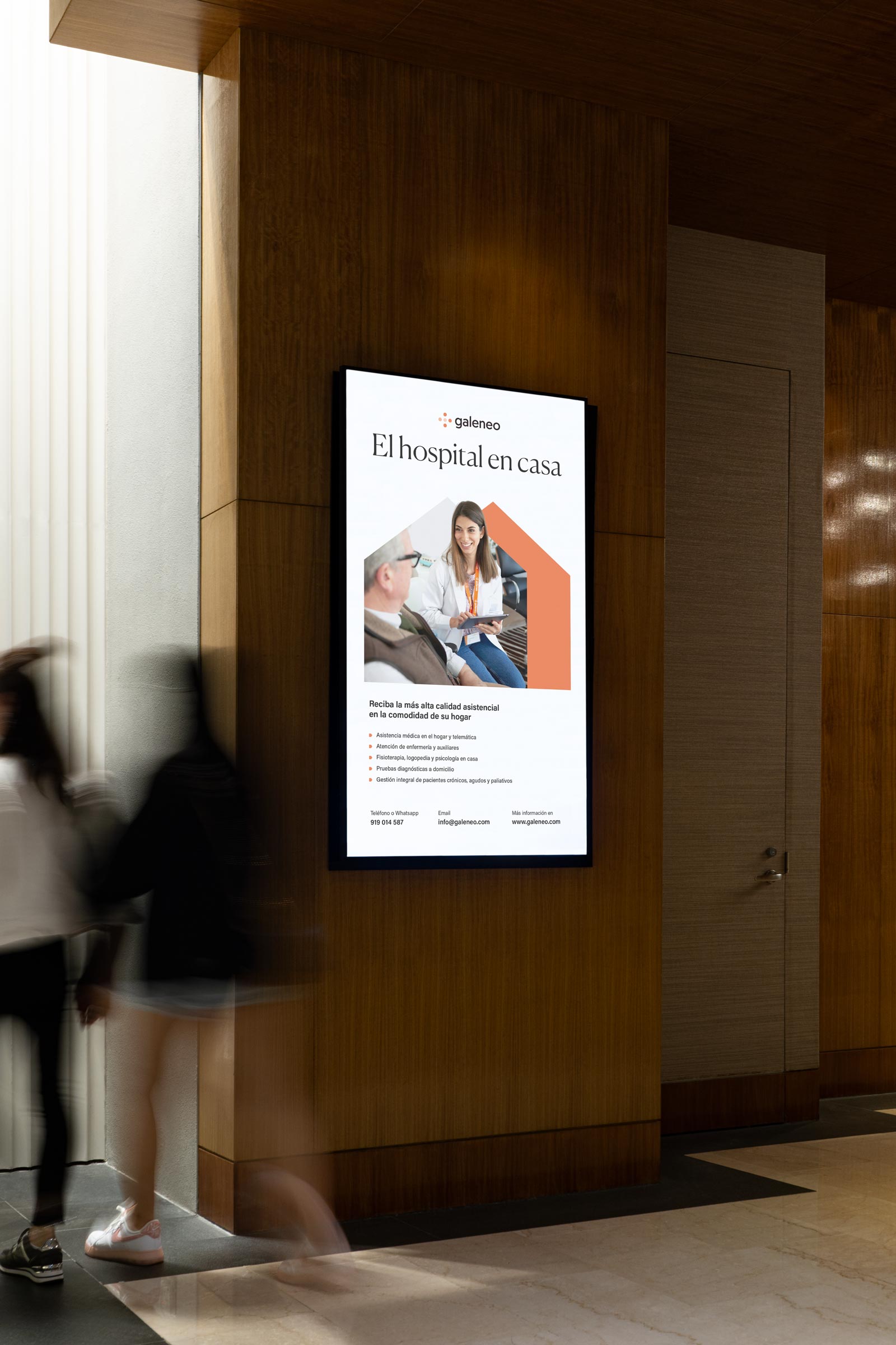 La hospitalización domiciliaria es una de las next big things en salud. En lo referente al branding, es un territorio en el que todavía se están dibujando los mapas. Trabajar con Galeneo ha sido un aprendizaje constante en el que he tenido que echar mano de todos mis recursos profesionales. Es, hasta hoy, mi proyecto más completo como freelance, una colaboración que ya entra en su tercer año de vida.